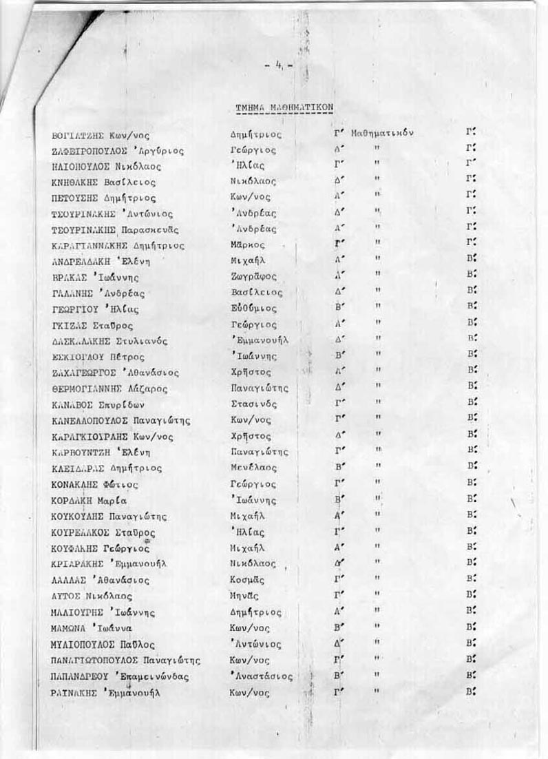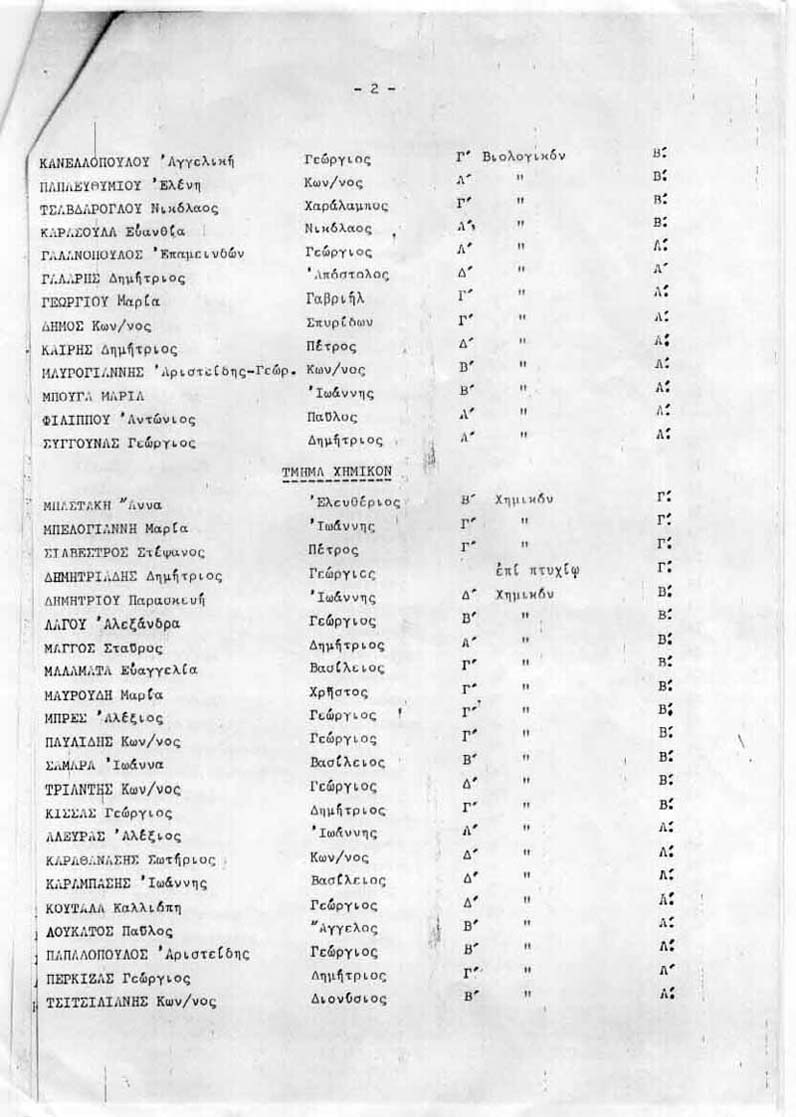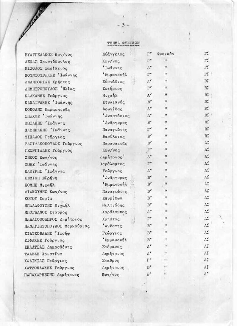 [Το συγκεκριμένο αντίγραφο της κατάστασης παρέδωσε ο καθηγητής του Πανεπιστημίου Πατρών κ. Χριστοδούλου το 1998]